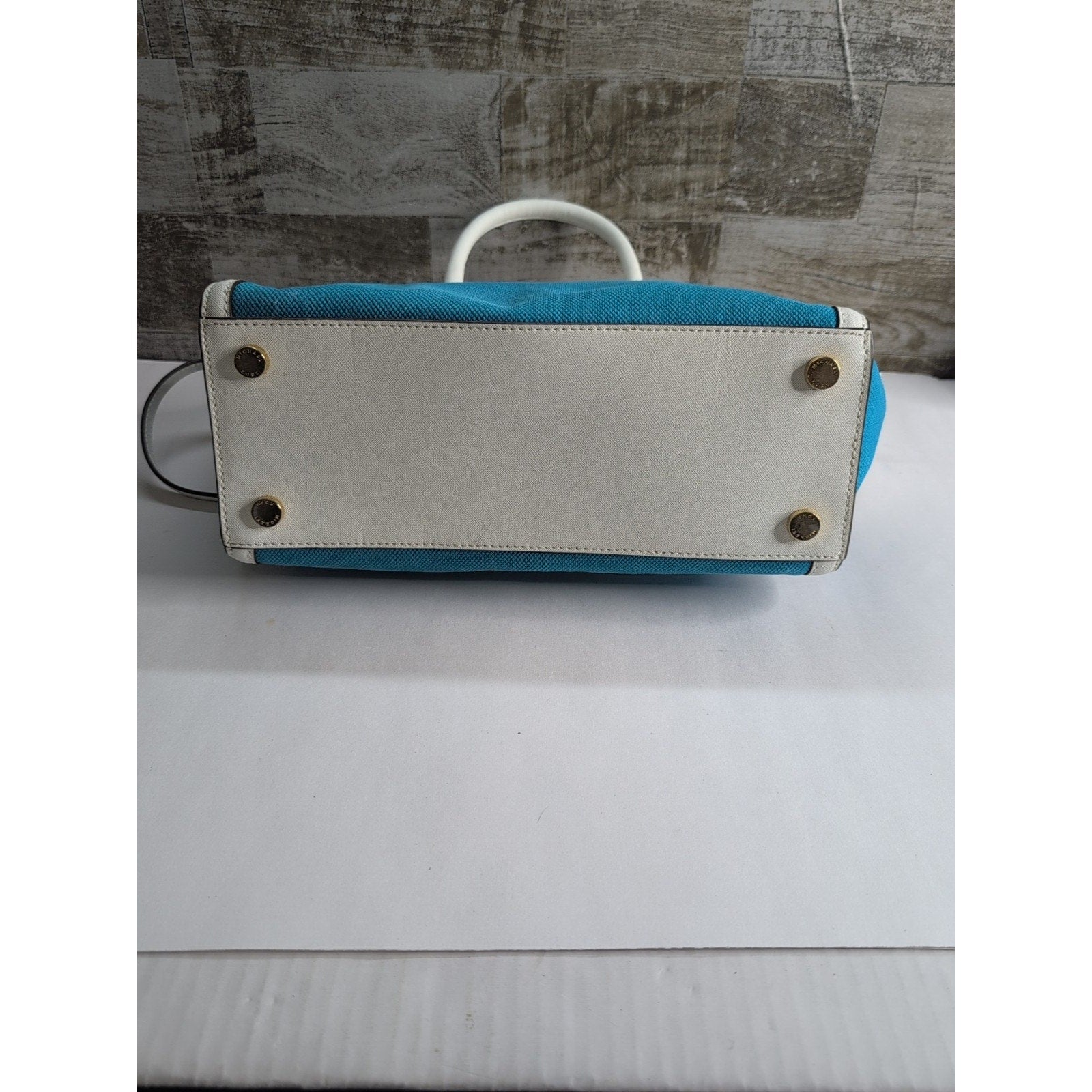 MICHAEL KORS Selma Large Top Zip Summer Blue Canvas/Leather Satchel Bag *CLEAN*