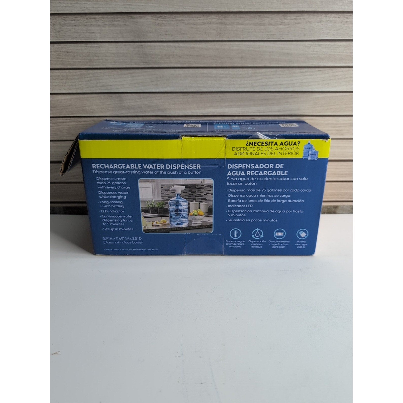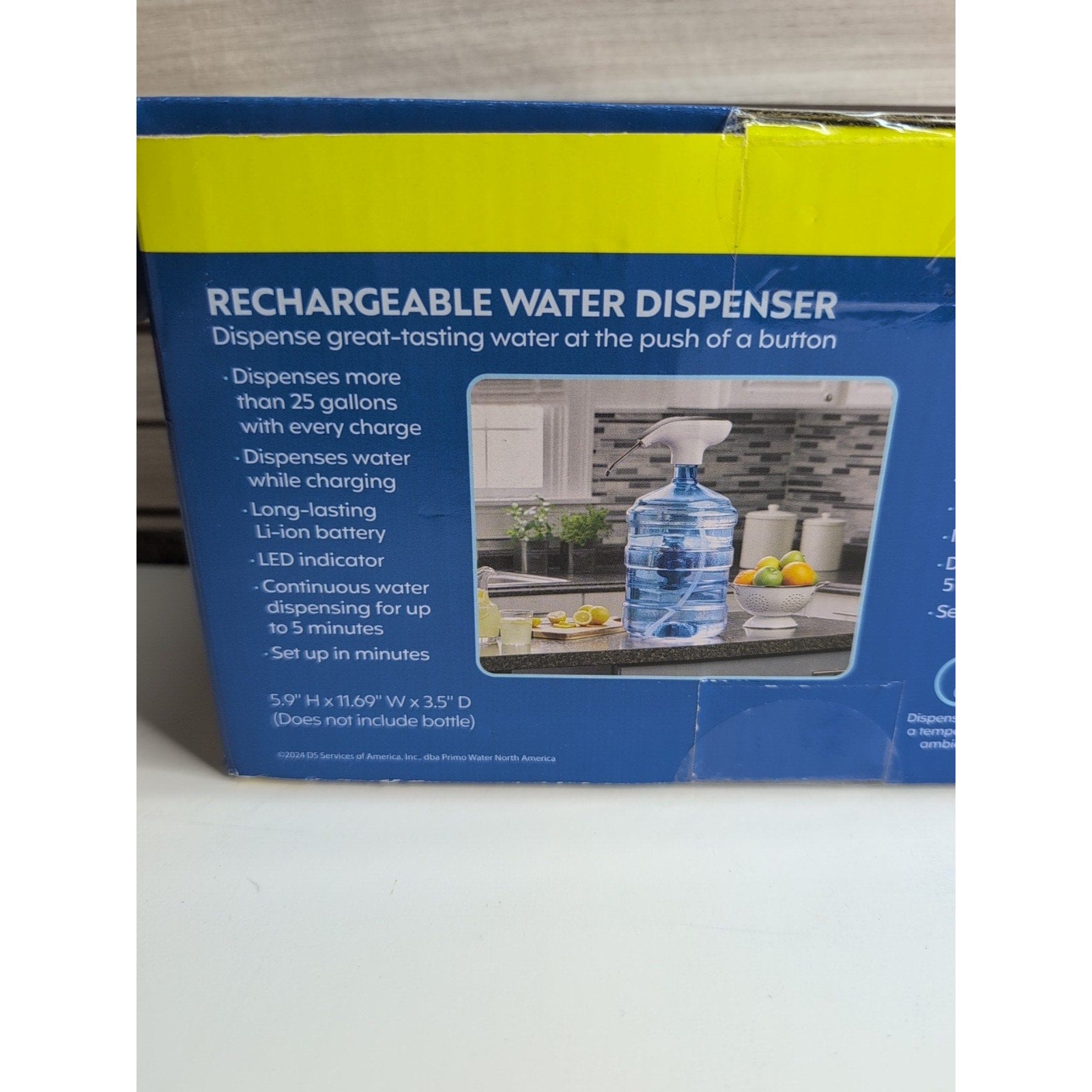 The Primo Portable Rechargeable Water Pump Dispenser in Black/White is a convenient countertop appliance suitable for kitchen use. It features a top-loading style with a single tap for dispensing room temperature water. Powered by batteries and made of plastic, this dispenser is easy to use and maintain. The brand Primo is known for quality and reliability, making this water pump dispenser a practical addition to any home.