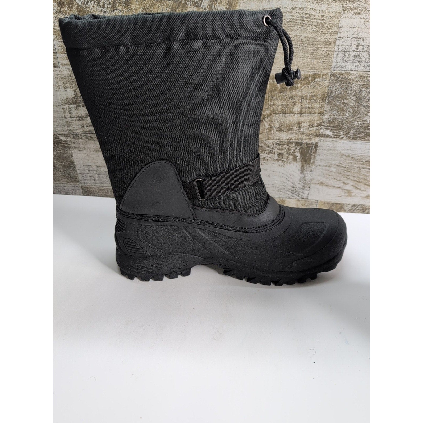 The Therma weatherproof Shell Winter Fun 11 Med. Black Thermal Barrier boots are designed for winter activities, featuring a mid-calf shaft style with a drawstring closure for a secure fit. Made with a waterproof and insulated shell, these boots are perfect for outdoor adventures in cold weather. The black color and solid pattern, along with the adjustable strap and thermal barrier, make them a stylish and functional choice for winter wear. With a medium calf width and a size 11 US shoe size, these boots are a reliable option for staying warm and comfortable during the winter season.