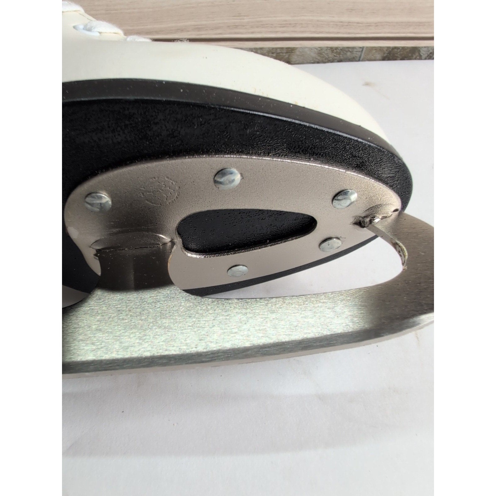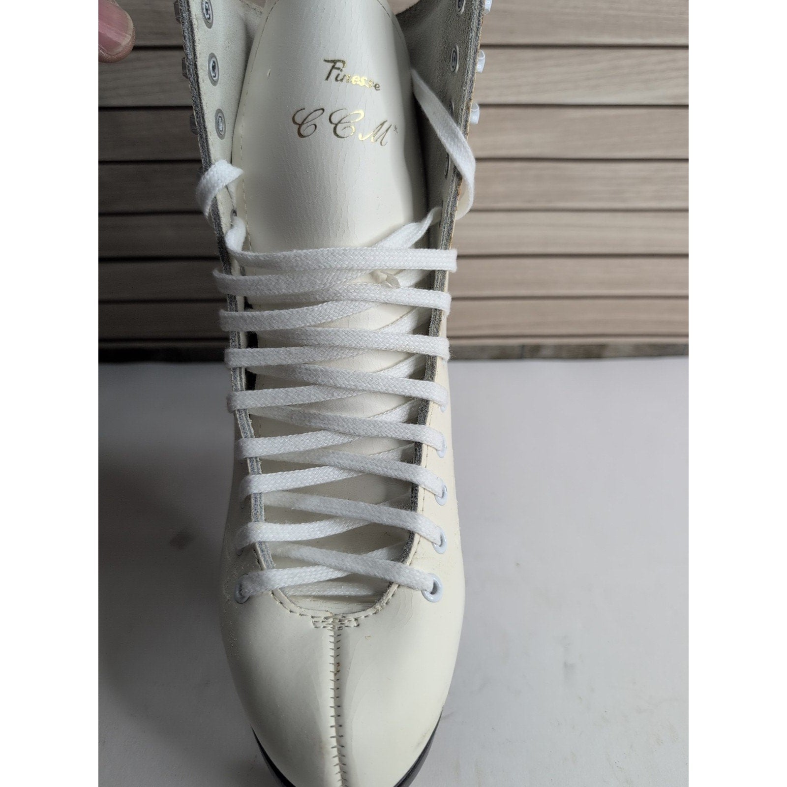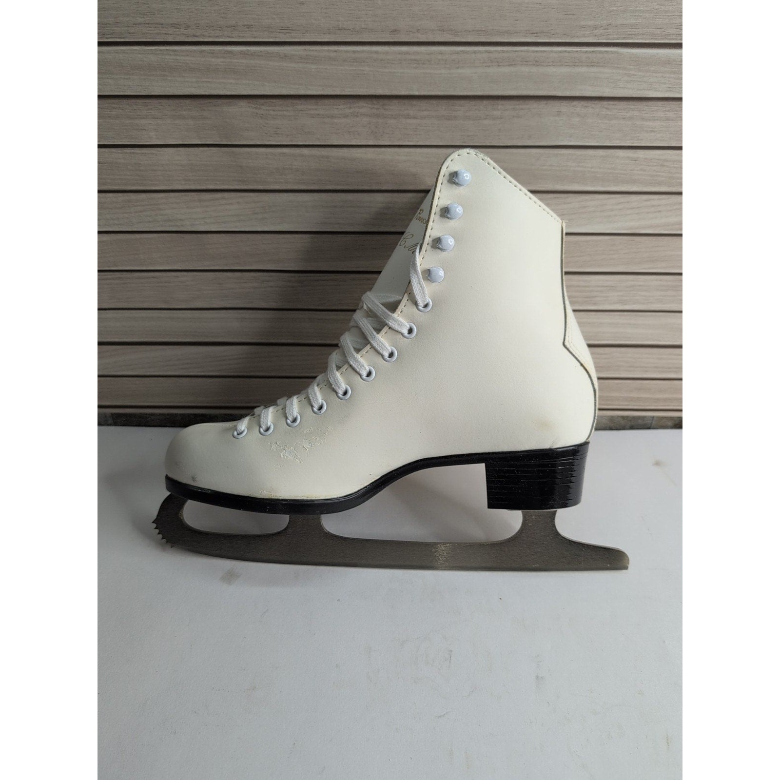 The product is a pair of vintage CCM USA Pastime leather and steel arch figure ice skates for women in size 7. These skates are designed for ice hockey and feature a classic white color. The model number for this pair of skates is CCM 2114 129 6404. Perfect for any ice hockey enthusiast looking for a high-quality and durable pair of skates to enhance their performance on the rink.