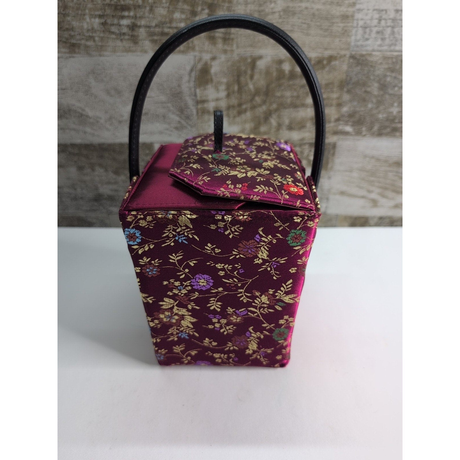 Women's Chinese "TAKE AWAY" inspired Burgundy silk handbag